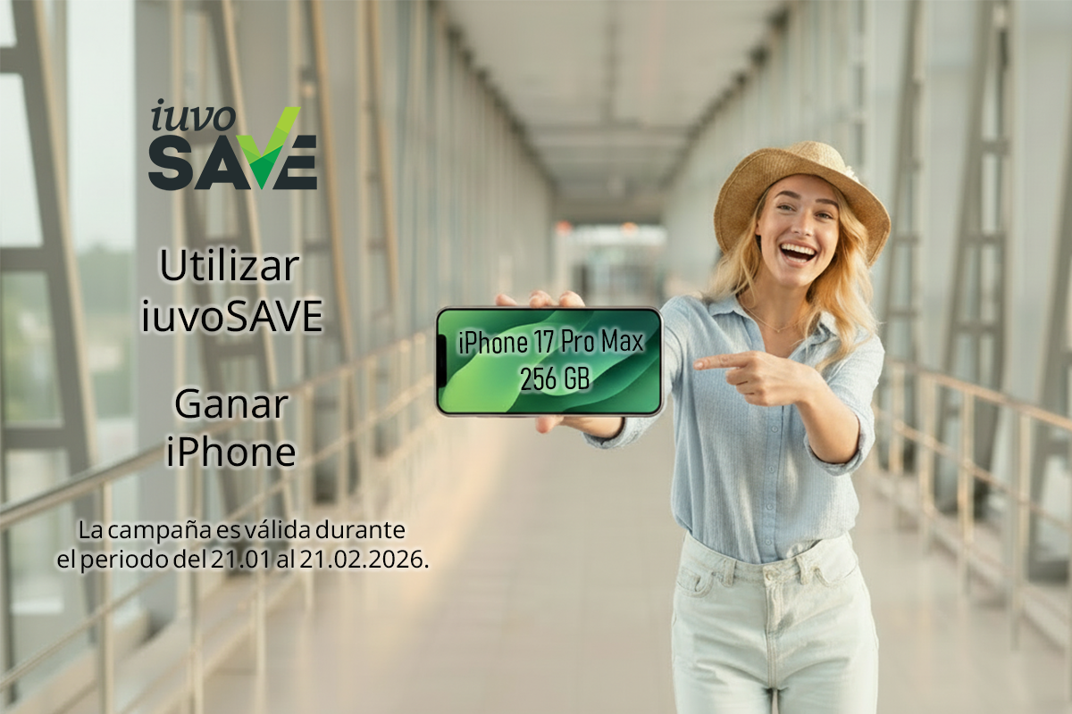 Participa en el sorteo iuvoSAVE, donde el ganador recibirá un nuevo iPhone 17 Pro Max de 256 GB. La campaña es válida del 21.01 al 21.02.2026.